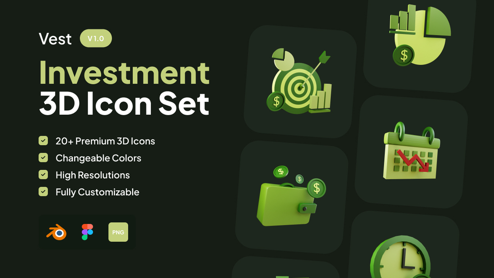 25+ Investment 3D Icons Set [Vest V1.0]